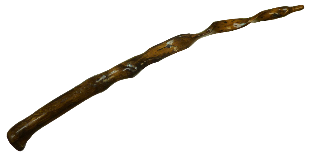 The process begins with selecting a branch because of its unique characteristics, then cutting it to a desired length, stripping the bark off, carving the piece into a wand configuration that best works with the wood, sanding, staining, and seal coating to protect the wand and its finish. Many different tools are used. The entire process of making one wand takes many hours of painstaking but enjoyable effort. Seeing a tree branch wood transform into a completed wand is inspiring. I prefer to craft my wands from hand selected tree branch wood because each branch is unique in regards to shape, grain pattern, knots, burls and especially when age introduces blemishes, twists, and includes surprises that are exposed as the wood is being carved. The wood I use is typically, Walnut, Oak, Maple, Hawthorn, and Willow.The process begins with selecting a branch because of its unique characteristics, then cutting it to a desired length, stripping the bark off, carving the piece into a wand configuration that best works with the wood, sanding, staining, and seal coating to protect the wand and its finish. Many different tools are used. The entire process of making one wand takes many hours of painstaking but enjoyable effort. Seeing a tree branch wood transform into a completed wand is inspiring. |