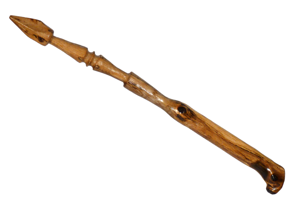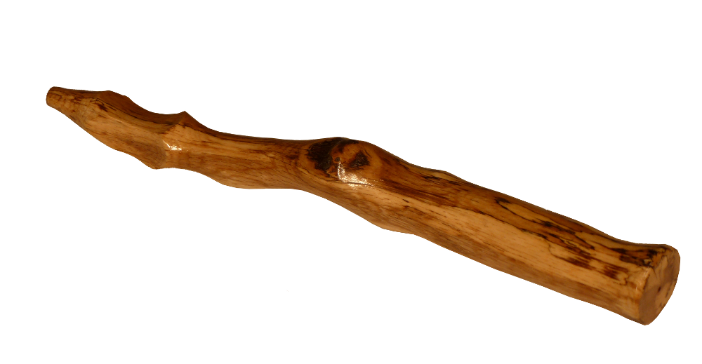 I prefer to craft my wands from hand selected tree branch wood because each branch is unique in regards to shape, grain pattern, knots, burls and especially when age introduces blemishes, twists, and includes surprises that are exposed as the wood is being carved. The wood I use is typically, Walnut, Oak, Maple, Hawthorn, and Willow.